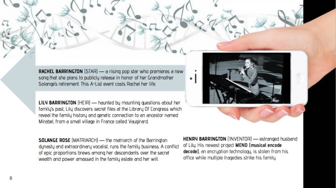 Using unique, geographically linked musical clues, the Barrington saga will roll out through projects in traditional media (beginning with print, and moving to film, video, and music/soundtrack) and new media (including video games, DVD, Web, and wireless.) MEH Multimedia will offer the kind of complex, interactive universe required by savvy young consumers of entertainment today.